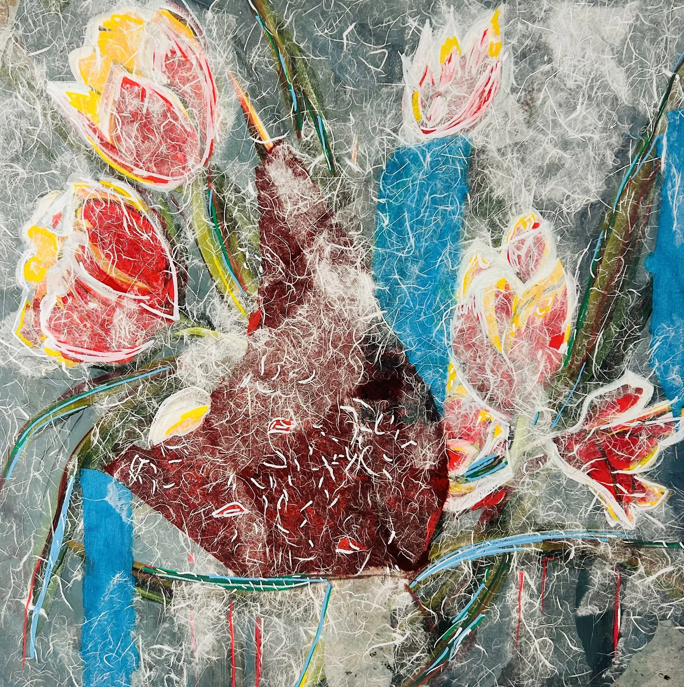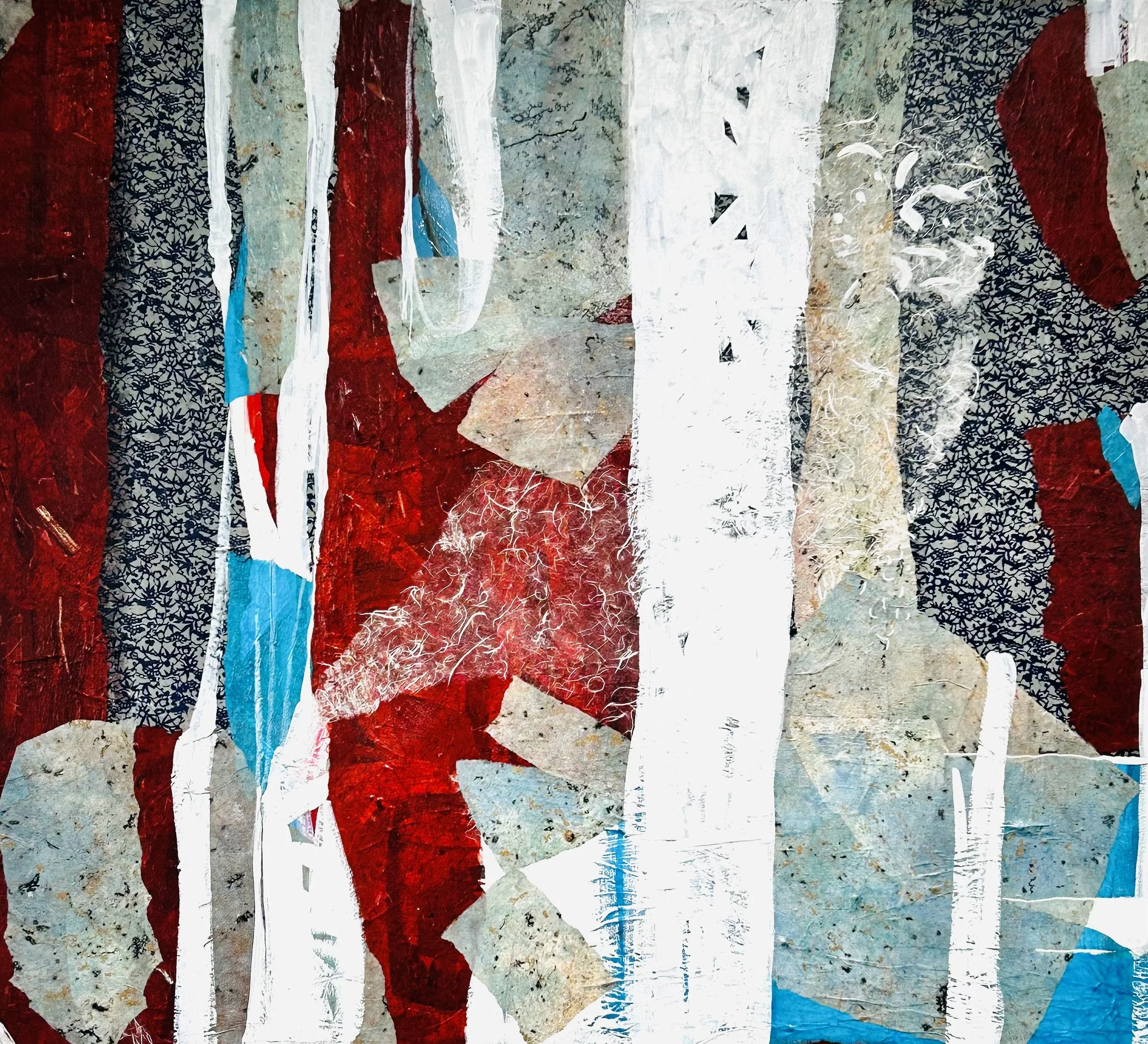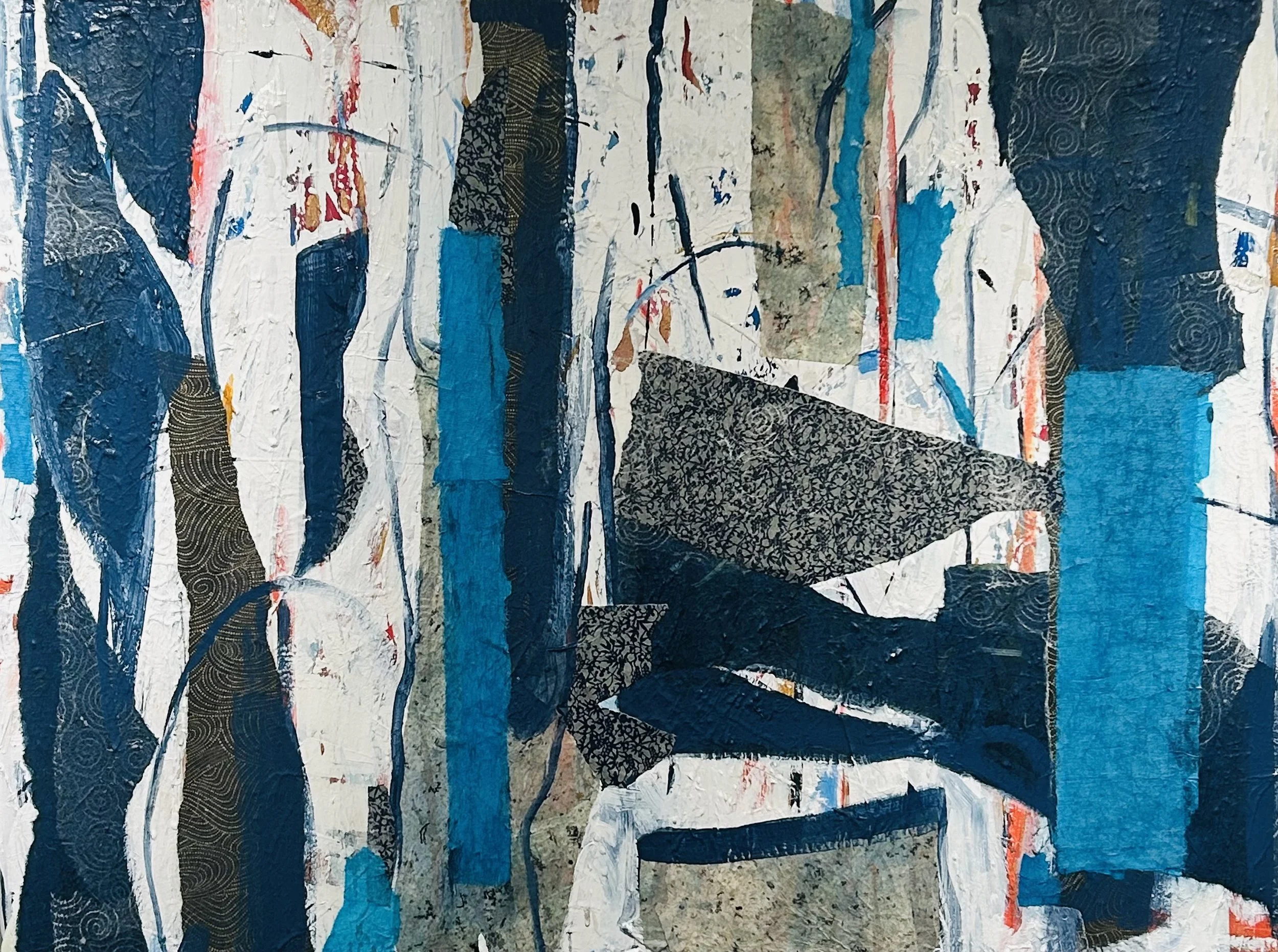 In this series of mixed media pieces, “Convergence” the artist has married her intuitive, feeling brain with her rational brain to create unique pieces of great depth and understanding of the elements of art and understanding of the world. With 40 years of painting, the creative process has been honed to show mastery of execution and design, and each piece stores a unique feeling of its own.