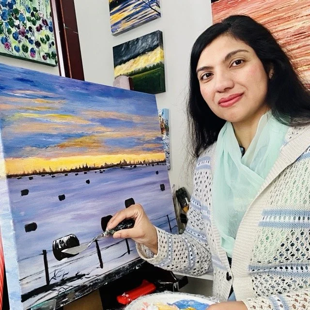 is a self-taught abstract artist based in Rocky View County, Alberta, inspired by the beauty of Canadian landscapes and the emotional depth of colour. Working primarily with acrylics and expressive palette knife techniques, she creates richly textured pieces that capture light, movement, and atmosphere.